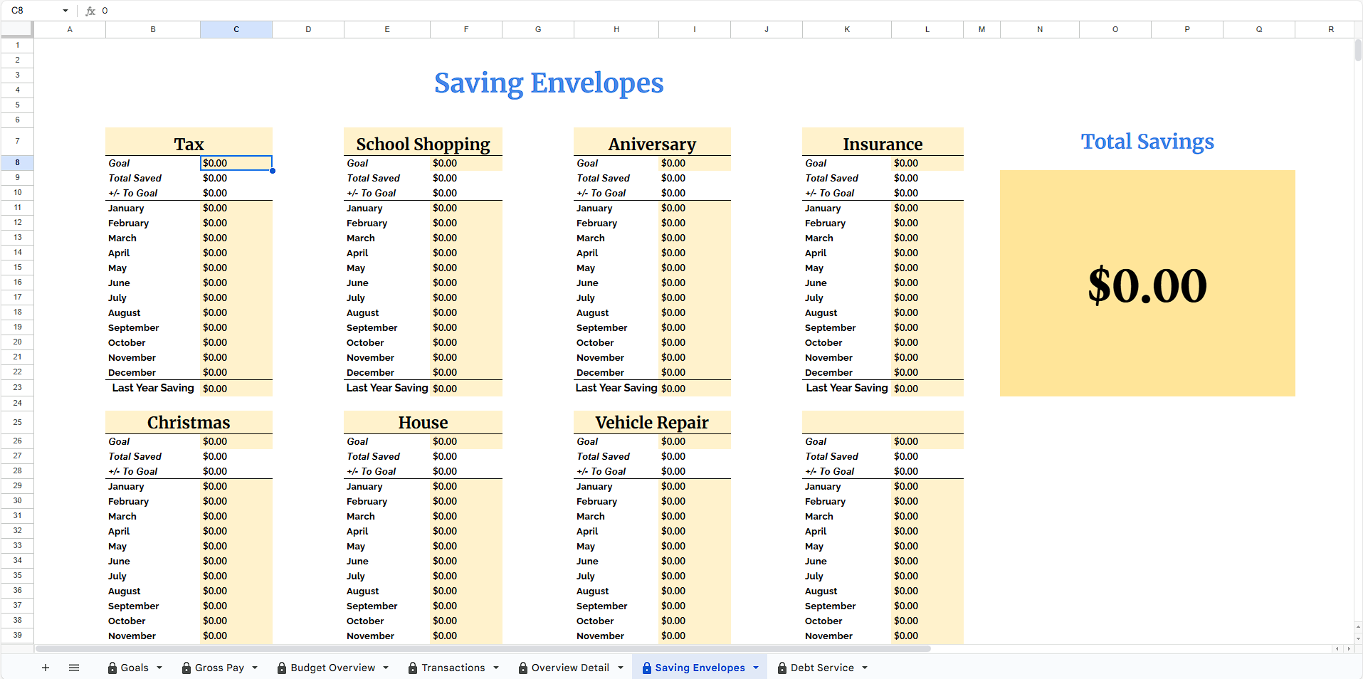 Vacation Savings. Large Purchase Savings. Irregular Bill Savings. General Maintenance.